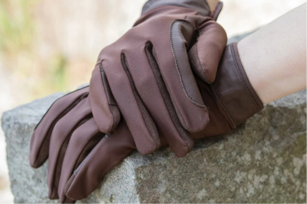 Performance-ready, these suede-palm and Lycra blend gloves feature a leather wrist strap for a tailored fit. Designed for showing or competitions.
