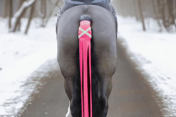 Make safety stylish: Vibrant fluorescent tassels for your horse's tail, designed for enhanced visibility on hacks.